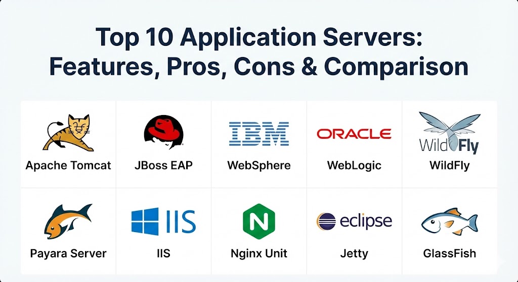 The importance of these tools lies in their ability to provide a standardized, reusable environment for developers. Instead of writing custom code for database pooling or multi-threading every time, developers leverage the built-in services of the application server. This accelerates development cycles and ensures enterprise-grade stability. Key real-world use cases include hosting large-scale ERP systems, banking portals, e-commerce engines, and high-concurrency microservices. When evaluating these tools, you should look for Jakarta EE (formerly Java EE) compliance, memory footprint, startup speed, scalability options, and cloud-native readiness.
