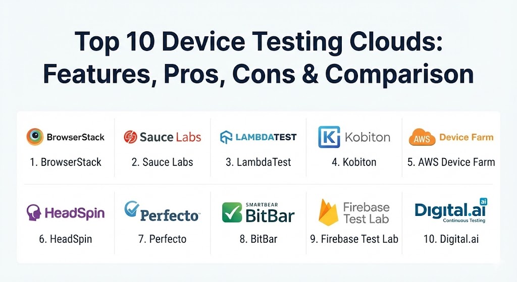 Top 10 Device Testing Clouds: Features, Pros, Cons & Comparison