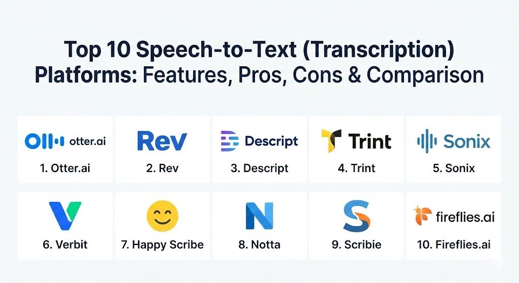 Top 10 Speech-to-Text (Transcription) Platforms